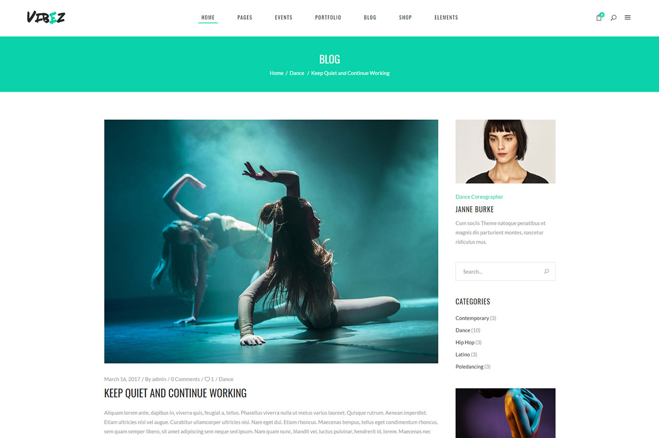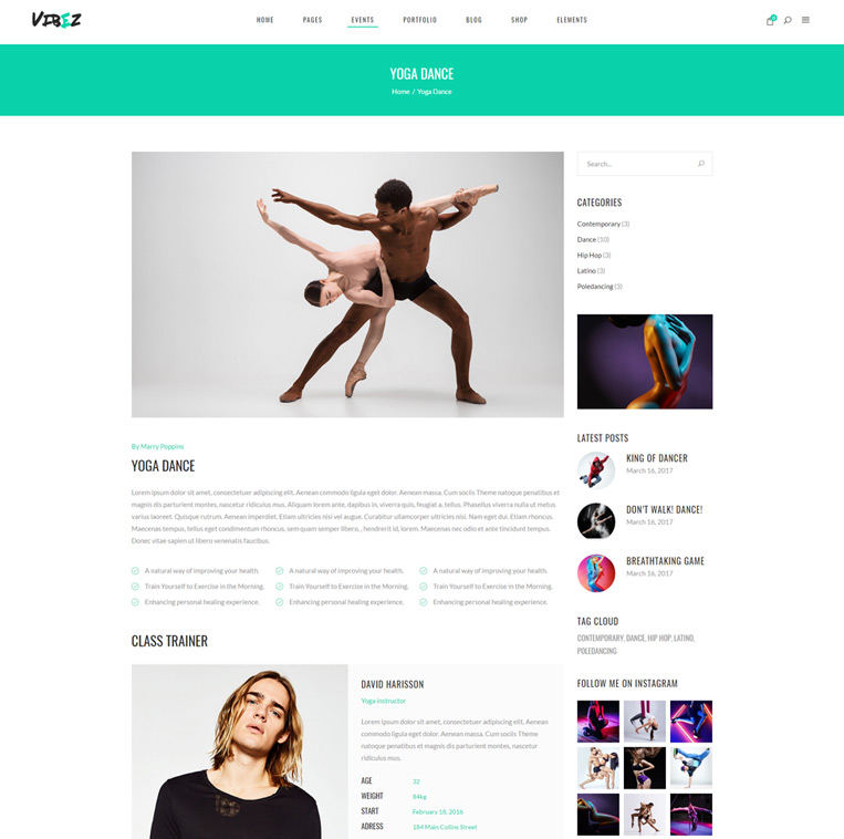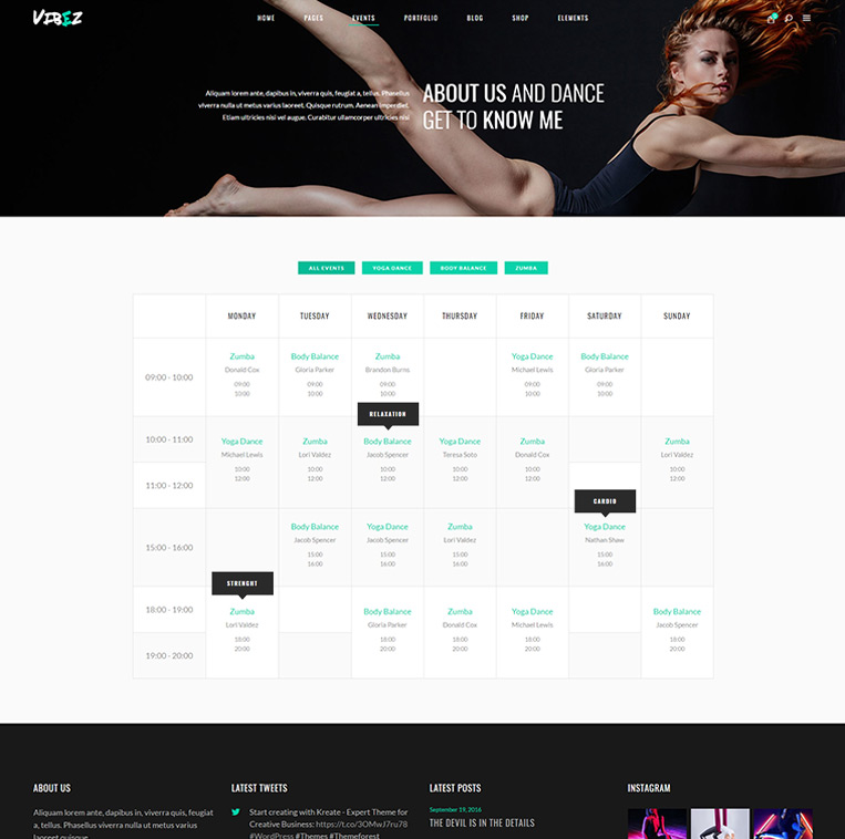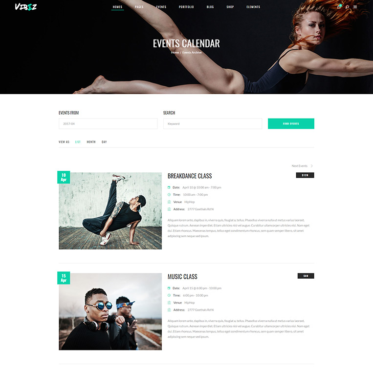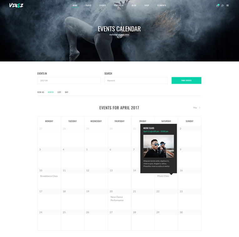 Easily schedule meetings, training sessions or any other type of event you wish in a clean looking, stylish and neatly organized calendar layout right there on your website. Vibez is fully compatible with the remarkable Events Calendar plugin, which also has a search functionality that allows finding specific events quickly. In addition to this, when your visitors hover over an event, an overview box with additional information about the event will appear.